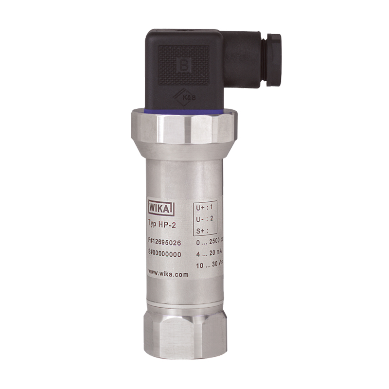 Mätnoggrannhet kl. 0,5% Utsignal 4-20 mA, 0-5 V eller 0-10 V Medieberörda delar av syrafast stål Inv M16x1,5 eller 9/16-18UNF L-kontakt, 4-polig kontakt eller kabel Även USB 2.0 typ A Område från 1600 bar till 15000 bar